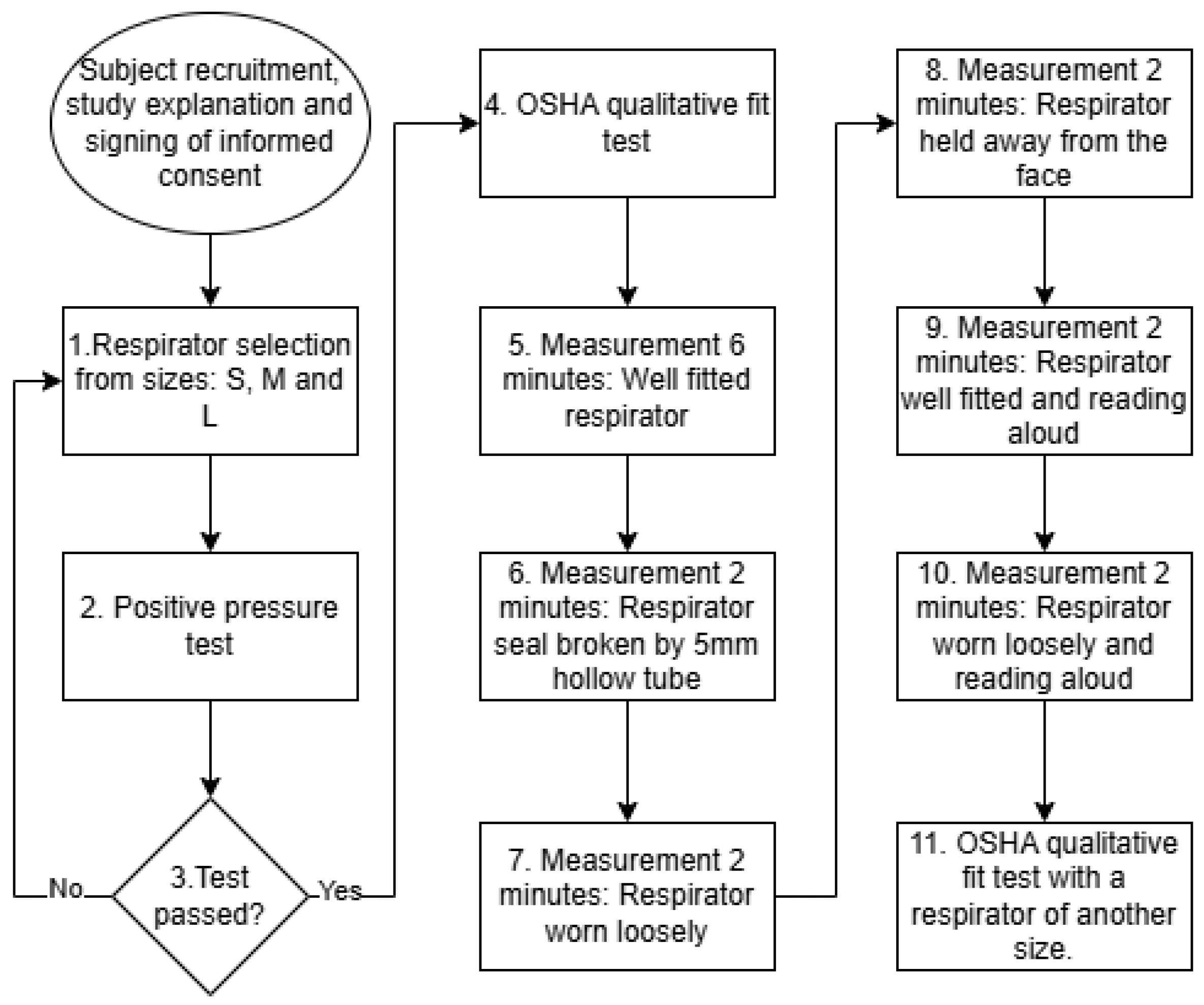- Occupational Safety and Health Administration (OSHA). Appendix A to § 1910.134—Fit Testing Procedures (Mandatory) Part I. OSHA-Accepted Fit Test Protocols; Occupational Safety and Health Administration, U.S. Department of Labor: Washington, DC, USA, 2004.