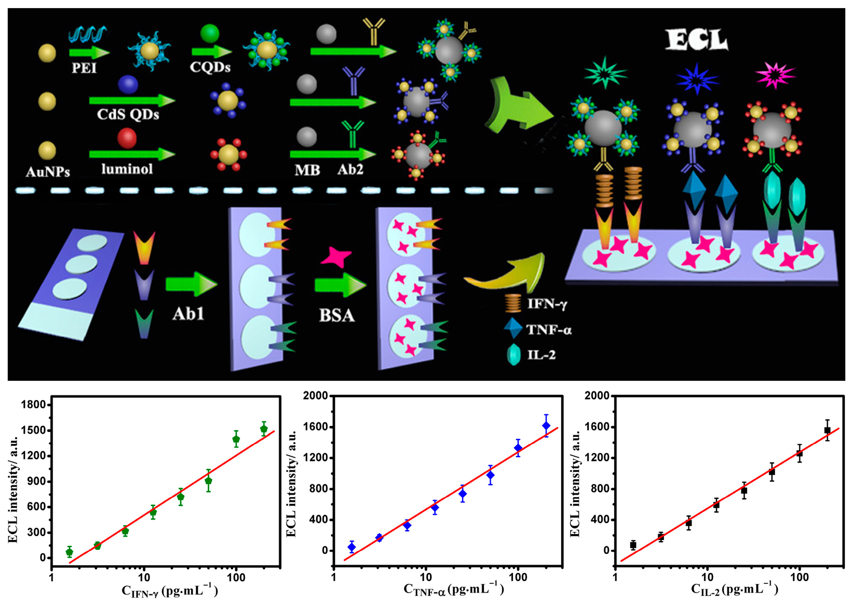 - Zou, G.; Tan, X.; Long, X.; He, Y.; Miao, W. Spectrum-resolved dual-color electrochemiluminescence immunoassay for simultaneous detection of two targets with nanocrystals as tags. Anal. Chem. 2017, 89, 13024–13029. [Google Scholar] [CrossRef]