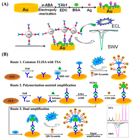 - Wang, H.; He, Y.; Chai, Y.; Yuan, R. A super intramolecular self-enhanced electrochemiluminescence immunosensor based on polymer chains grafted on palladium nanocages. Nanoscale 2014, 6, 10316–10322. [Google Scholar] [CrossRef] [PubMed]