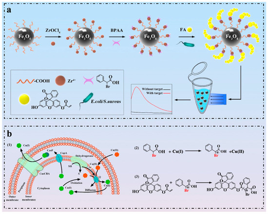 - Wang, Z.; Ma, N.; Zhang, J.; Ma, K.; Kong, J.; Zhang, X. Bacteria-instructed synthesis of free radical polymers for highly sensitive detection of Escherichia coli and Staphylococcus aureus. Anal. Chim. Acta 2024, 1329, 343259. [Google Scholar] [CrossRef] [PubMed]