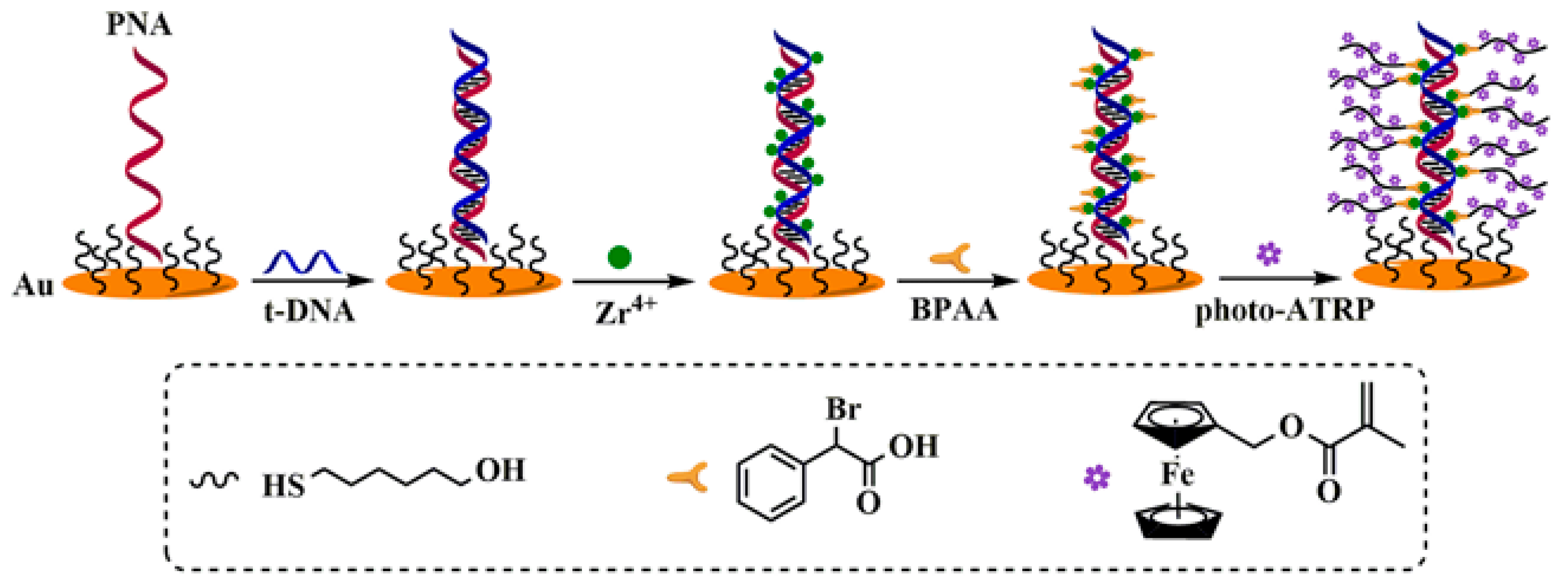 195. Zhang, J.; Liu, Q.; Ba, Y.; Cheng, J.; Yang, H.; Cui, Y.; Kong, J.; Zhang, X. F-containing initiatior for ultrasensitive fluorescent detection of lung cancer DNA via atom transfer radical polymerization. Anal. Chim. Acta 2020, 1094, 99–105. [Google Scholar] [CrossRef]