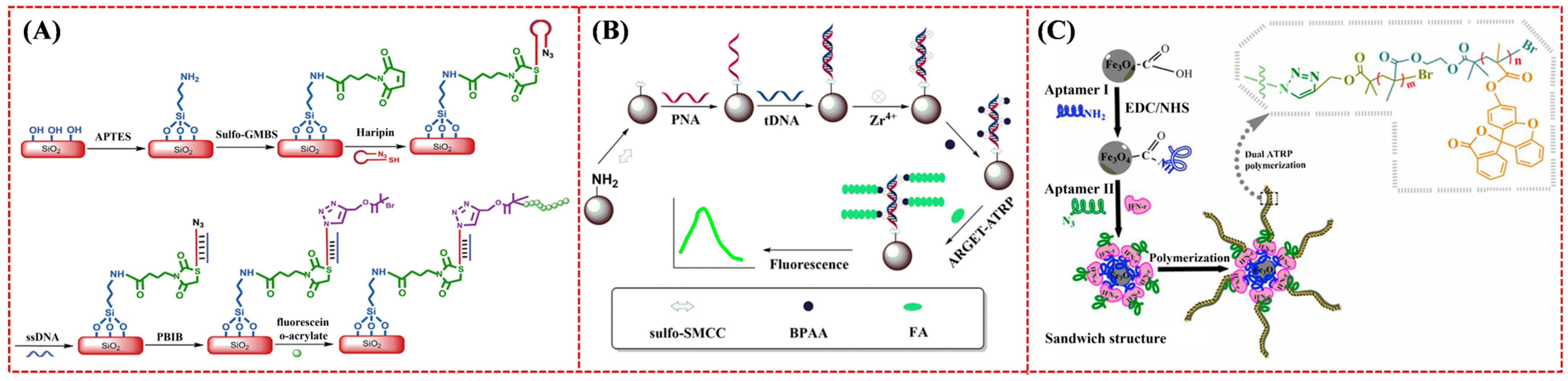 194. Zhang, J.; Ba, Y.; Liu, Q.; Zhao, L.; Wang, D.; Yang, H.; Kong, J. CuBr2/EDTA-mediated ATRP for ultrasensitive fluorescence detection of lung cancer DNA. J. Adv. Res. 2020, 22, 77–84. [Google Scholar] [CrossRef]