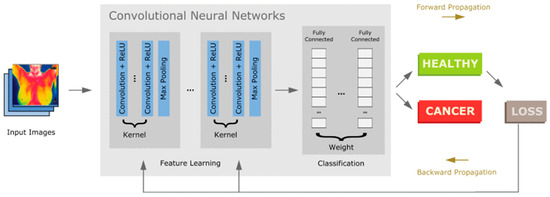 - Fernández-Ovies, F.J.; Santiago Alférez-Baquero, E.; de Andrés-Galiana, E.J.; Cernea, A.; Fernández-Muñiz, Z.; Fernández-Martínez, J.L. Detection of Breast Cancer Using Infrared Thermography and Deep Neural Networks BT. In Bioinformatics and Biomedical Engineering; Rojas, I., Valenzuela, O., Rojas, F., Ortuño, F., Eds.; Springer International Publishing: Cham, Switzerland, 2019; pp. 514–523. [Google Scholar]