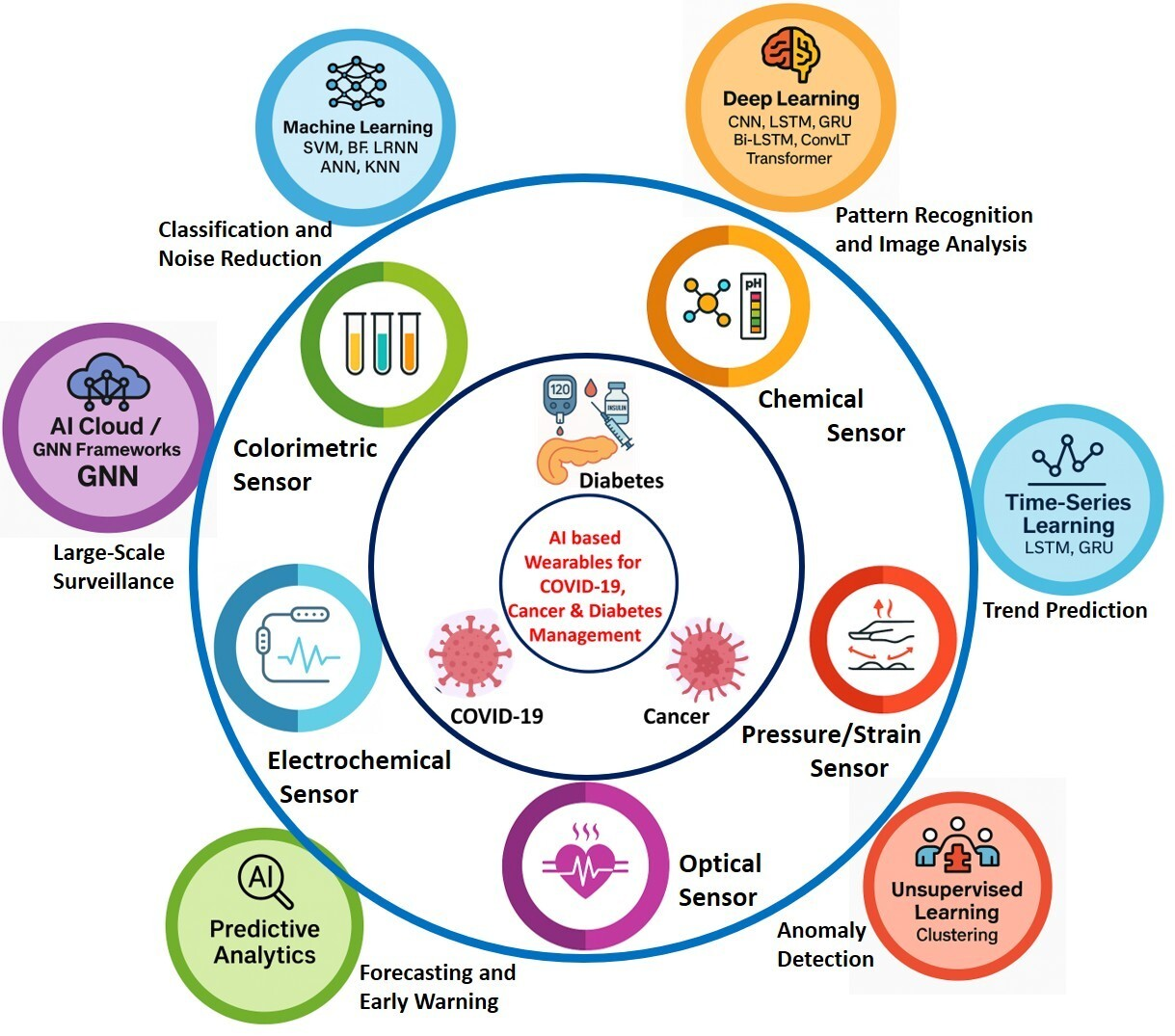Artificial Intelligence-Based Wearable Sensing Technologies for the Management of Cancer, Diabetes, and COVID-19