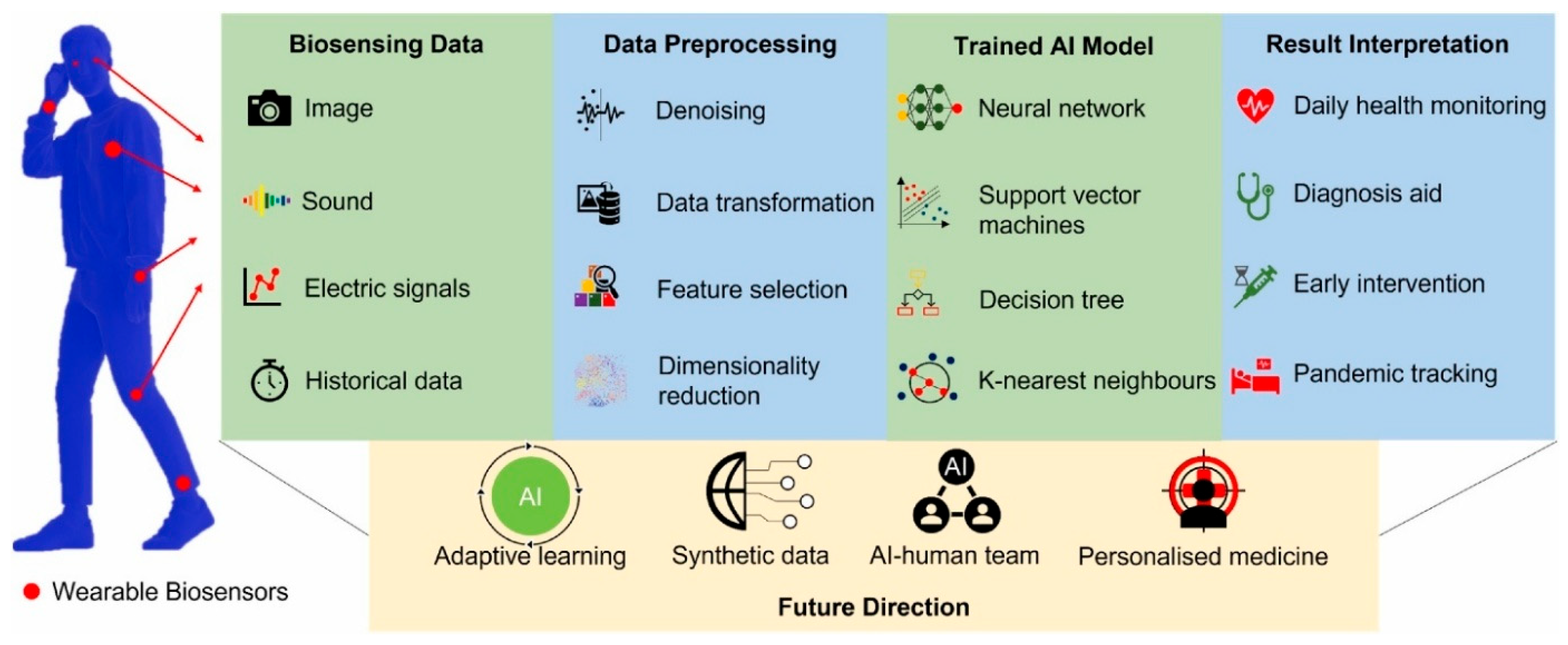 APA StyleKumar, A., Goel, S., Chaudhary, A., Dutt, S., Mishra, V. K., & Kumar, R. (2025). Artificial Intelligence-Based Wearable Sensing Technologies for the Management of Cancer, Diabetes, and COVID-19. Biosensors, 15(11), 756. https://doi.org/10.3390/bios15110756