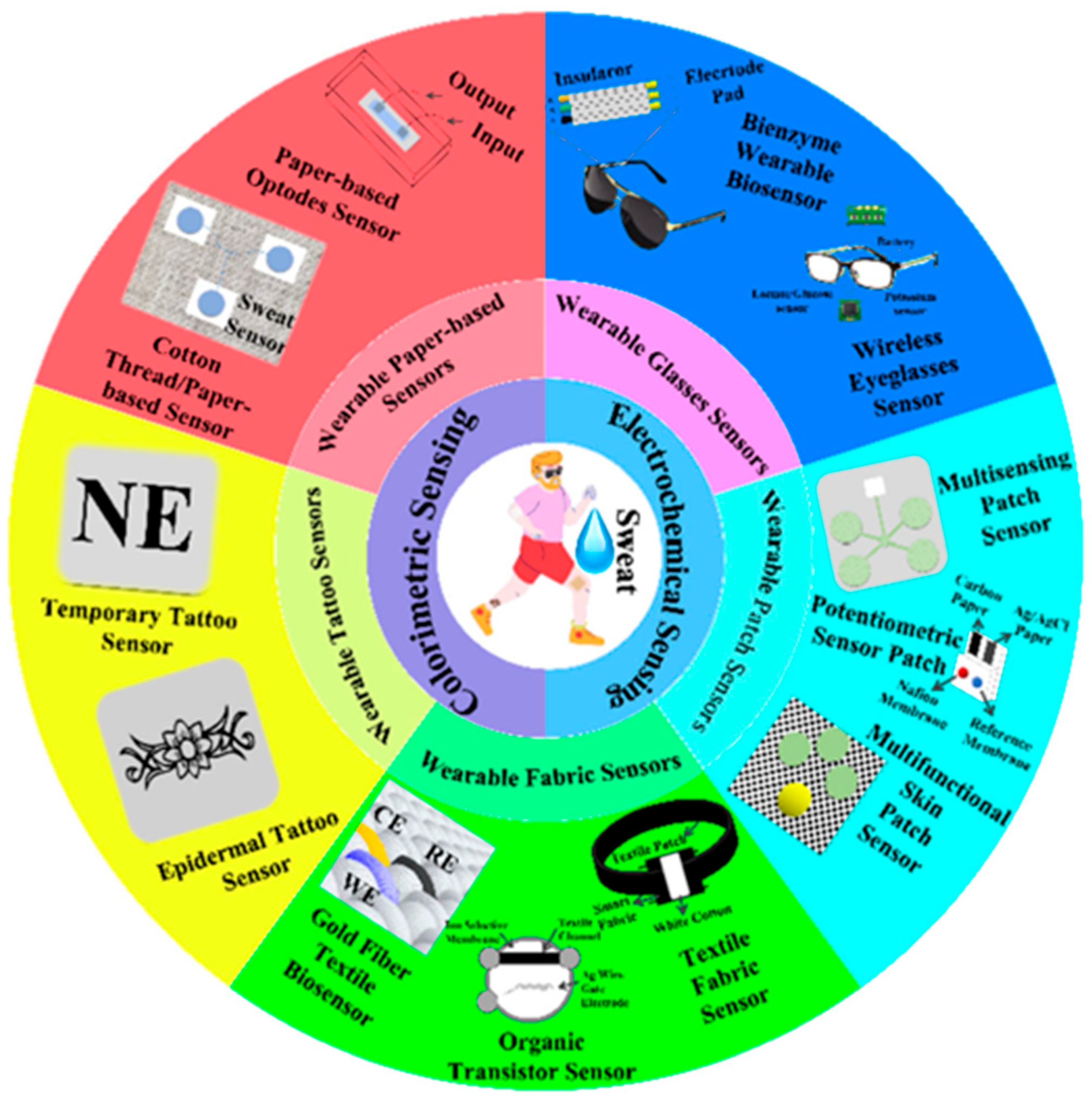 - Patle, S.; Rotake, D. Recent Advances, Technological Challenges and Requirements to Predict the Future Treads in Wearable Sweat Sensors: A Critical Review. Microchem. J. 2024, 200, 110457. [Google Scholar] [CrossRef]