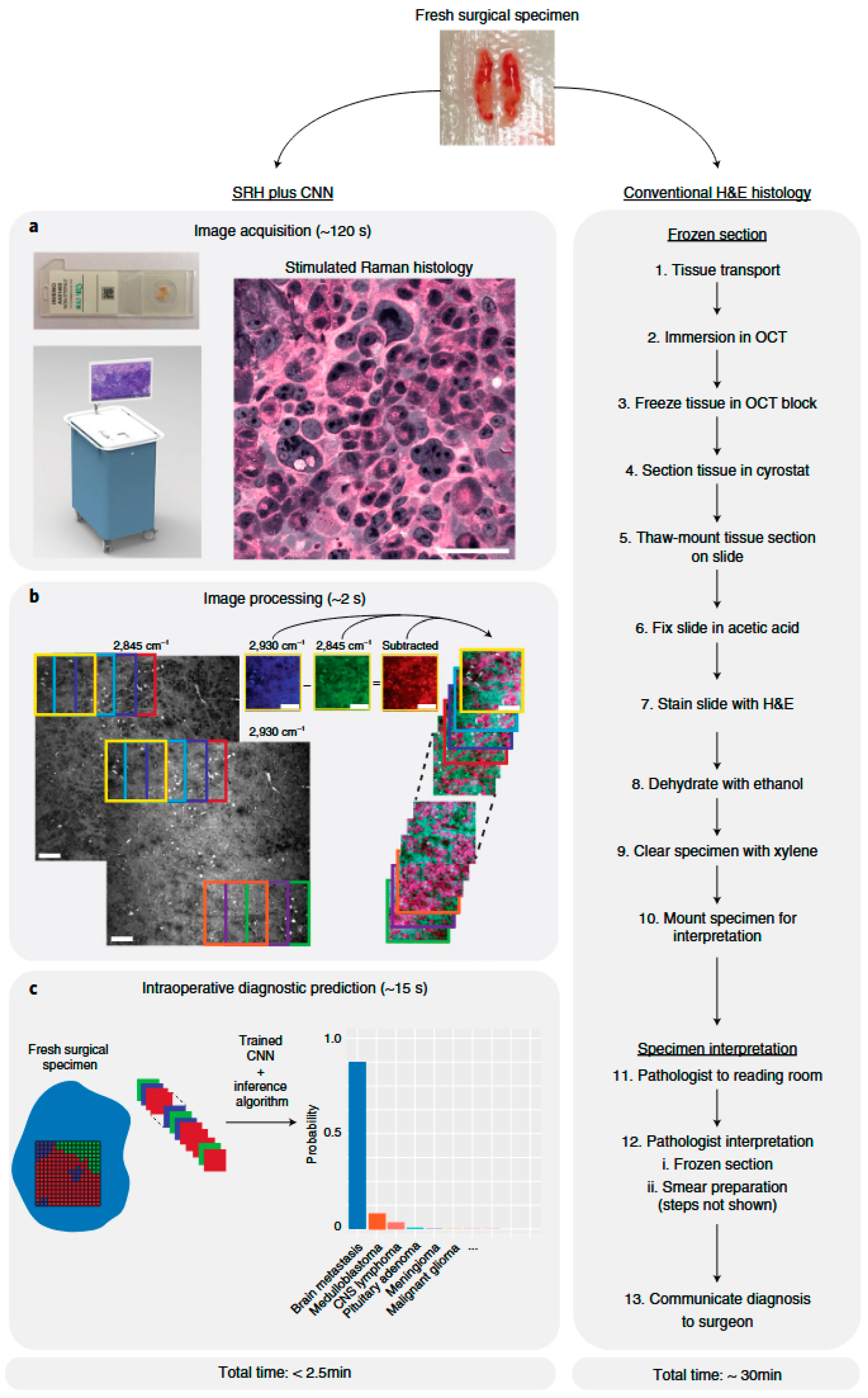 - Hollon, T.C.; Pandian, B.; Adapa, A.R.; Urias, E.; Save, A.V.; Khalsa, S.S.S.; Eichberg, D.G.; D’Amico, R.S.; Farooq, Z.U.; Lewis, S.; et al. Near Real-Time Intraoperative Brain Tumor Diagnosis Using Stimulated Raman Histology and Deep Neural Networks. Nat. Med. 2020, 26, 52–58. [Google Scholar] [CrossRef]