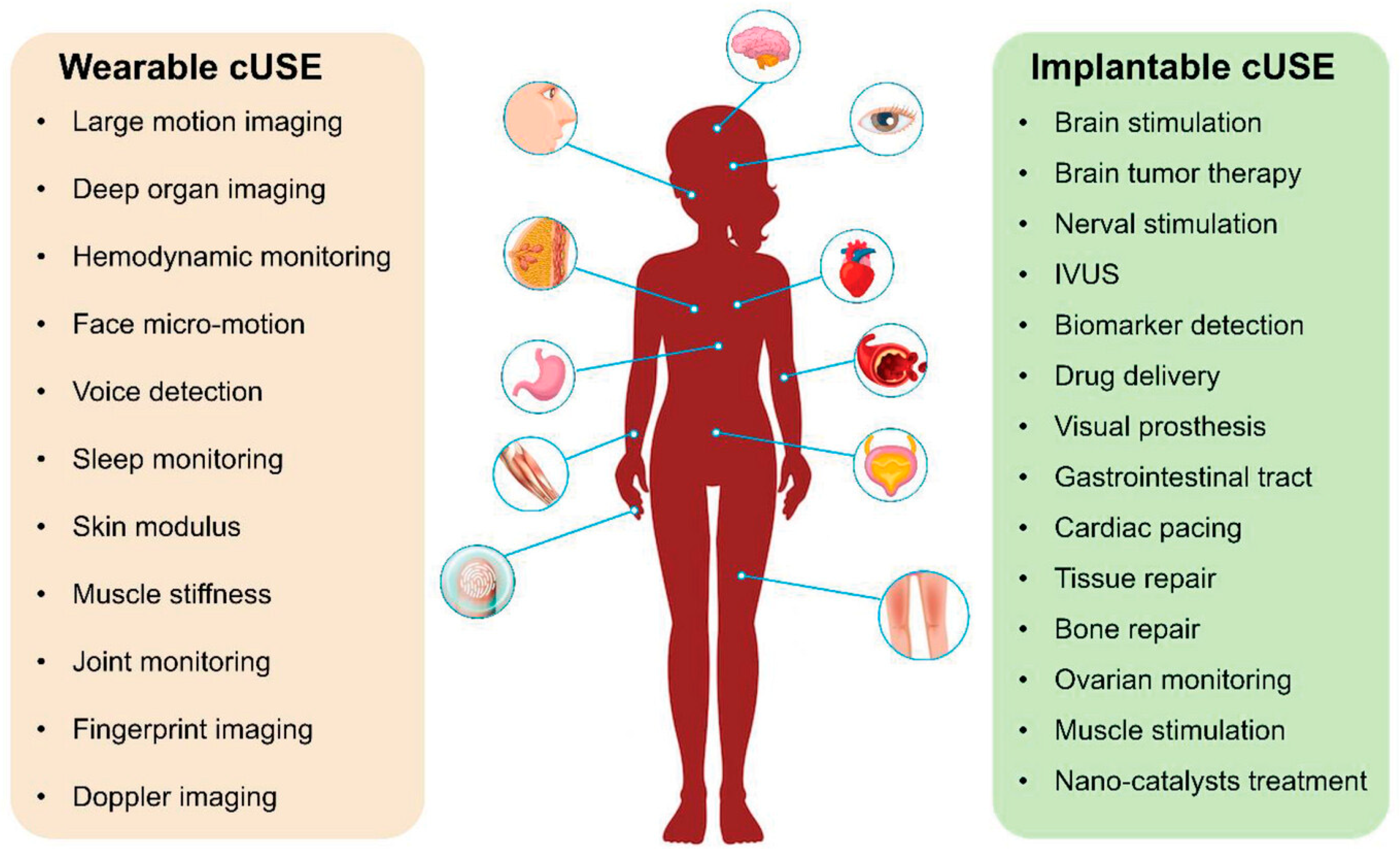 - Zhang, L.; Du, W.; Kim, J.H.; Yu, C.C.; Dagdeviren, C. An Emerging Era: Conformable Ultrasound Electronics. Adv. Mater. 2024, 36, 2307664. [Google Scholar] [CrossRef] [PubMed]