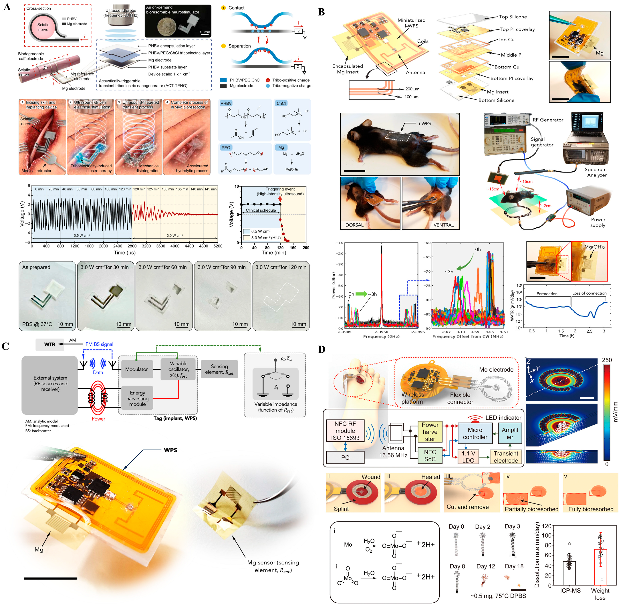 | Wireless & Bioresorbable Systems | Backscatter sensors, transient neurostimulators | Minimized surgical burden, auto-degradation |
