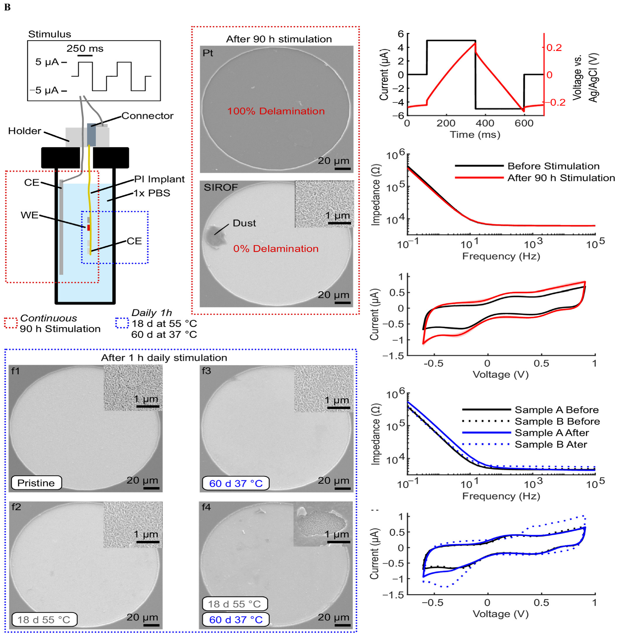 | Al2O3/SiO2 encapsulation films | Protect circuitry and block biofluid | Barrier quality still under long-term evaluation |