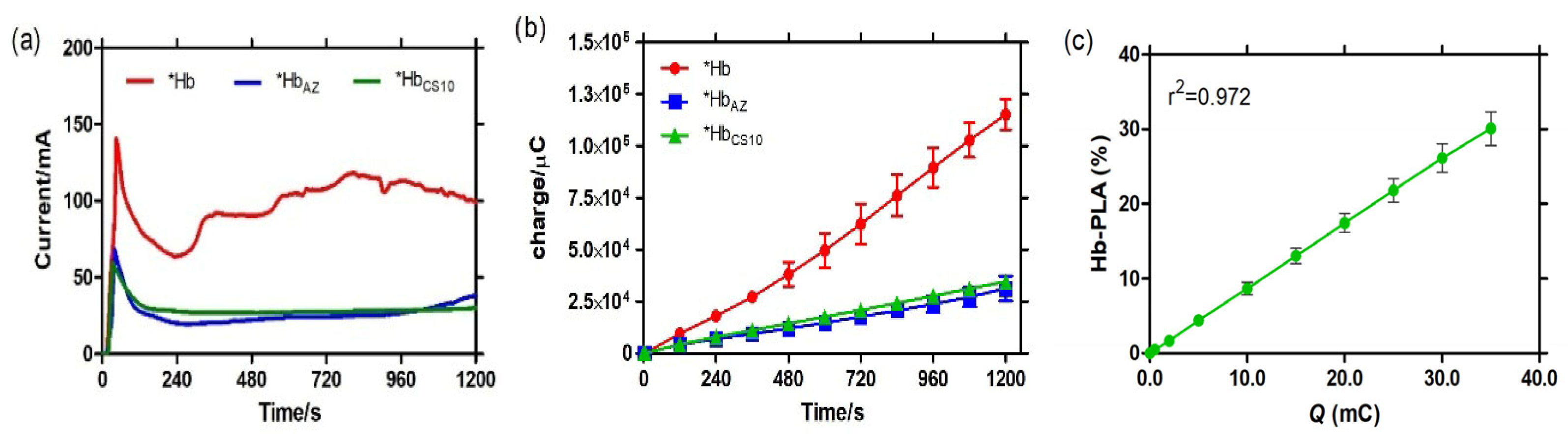 3.4. Measurement of Hb Activity by Chronoamperometry