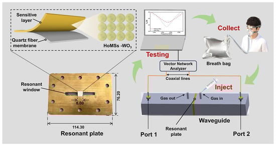 - Wang, R.; Ma, T.; Jin, Q.; Xu, C.; Yang, X.; Wang, K.; Wang, X. Waveguide-Based Microwave Nitric Oxide Sensor for COVID-19 Screening: Mass Transfer Modulation Effect on Hollow Confined WO3 Structures. ACS Sens. 2024, 9, 6051–6059. [Google Scholar] [CrossRef]