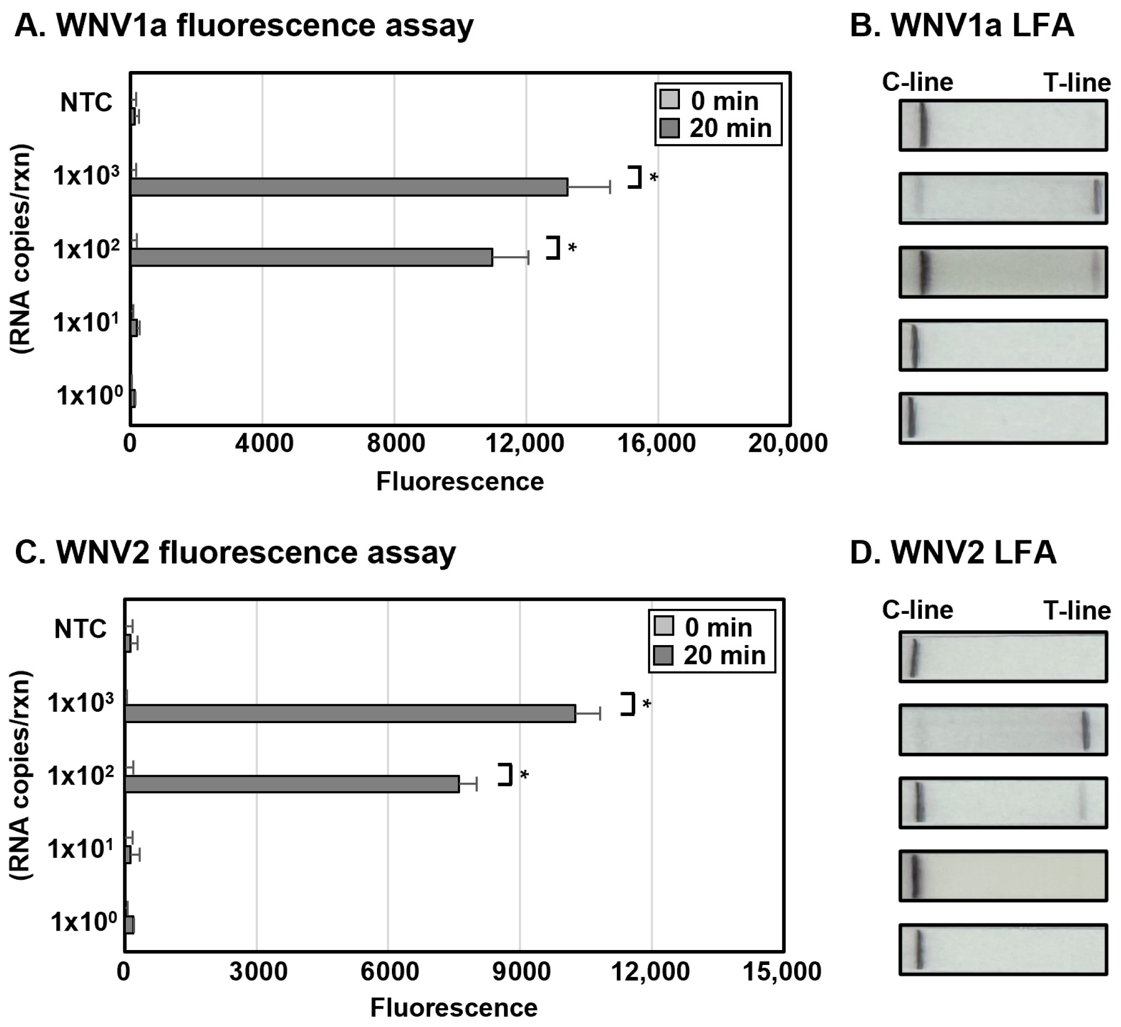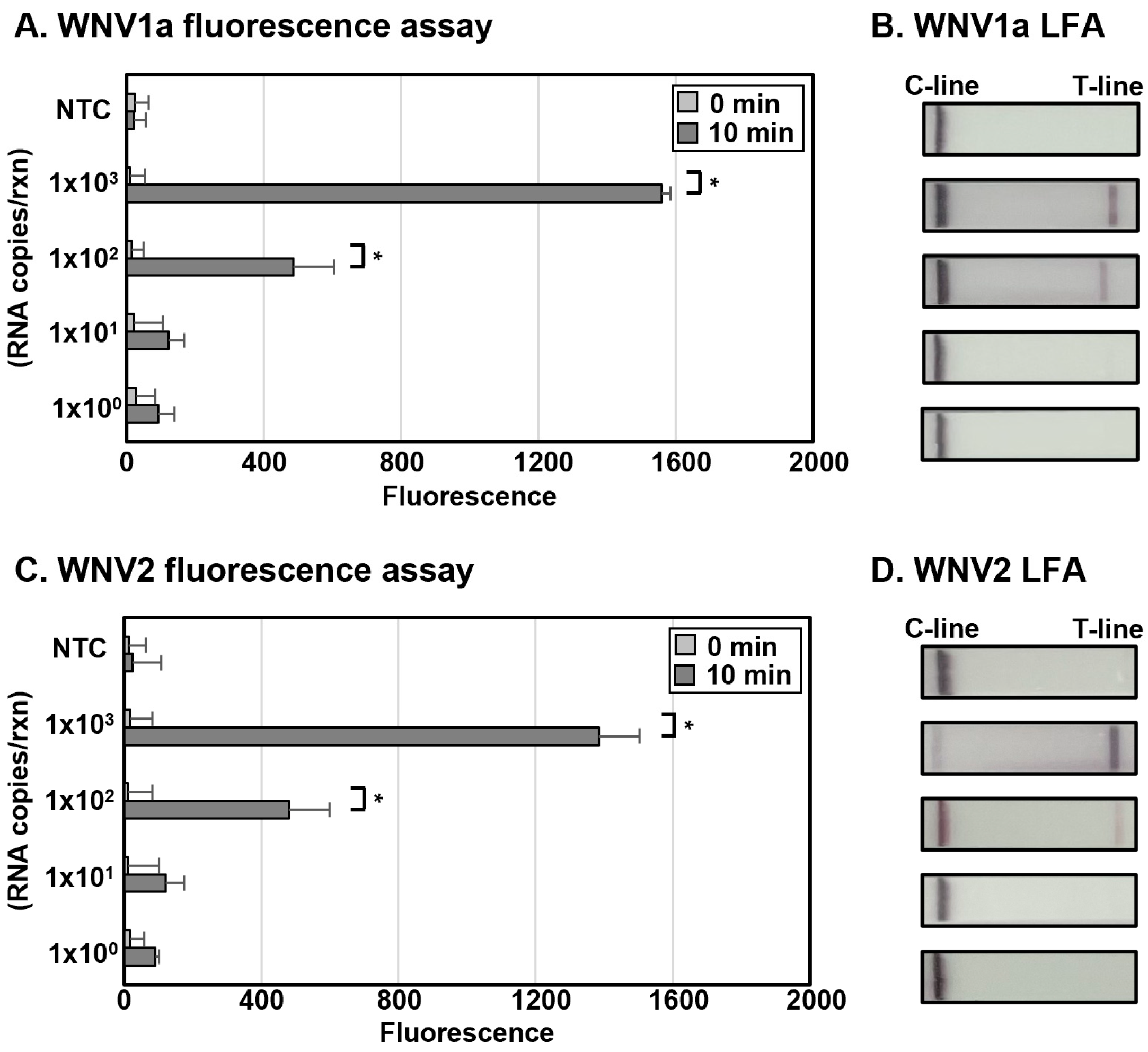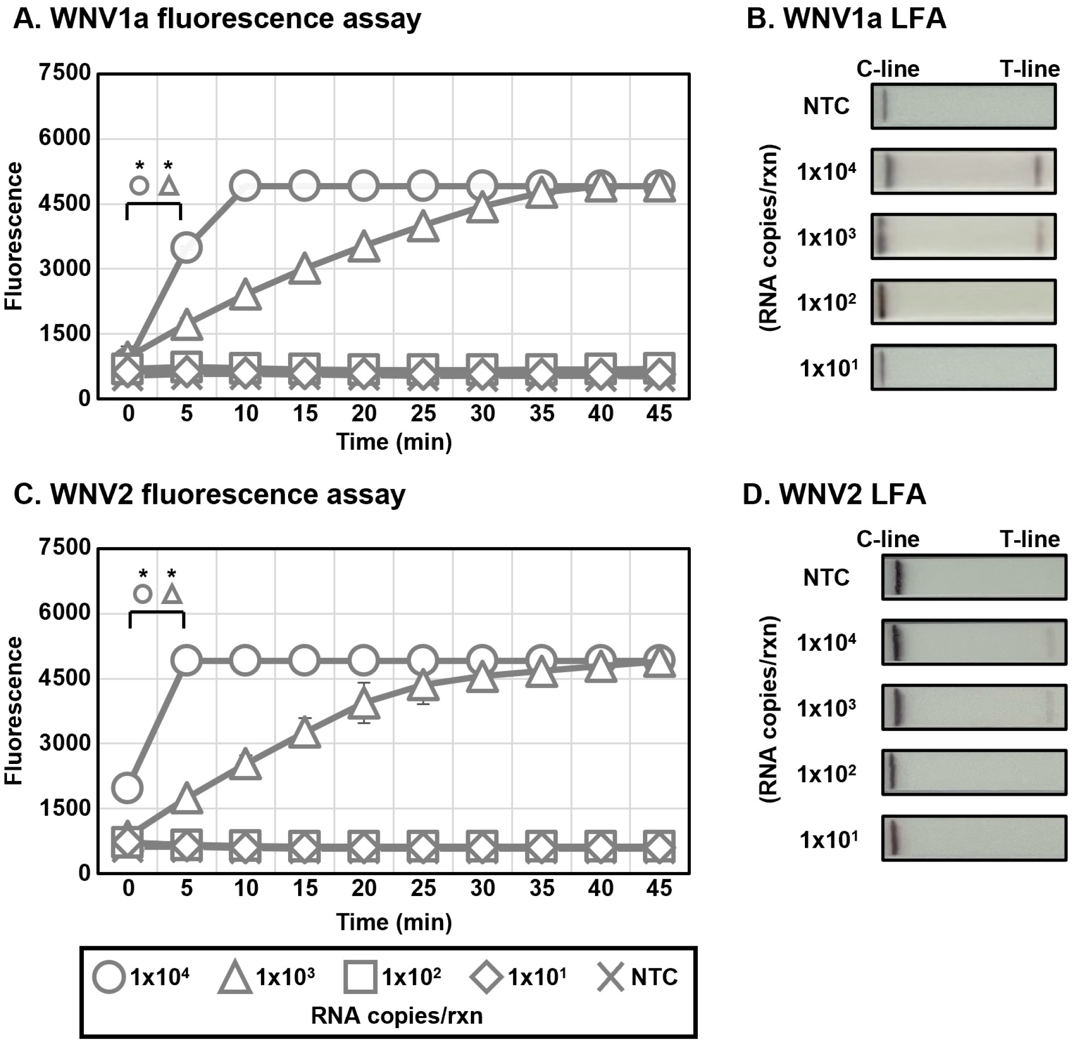 3.3. Determination of LoD of 1-Step WNV DETECTR