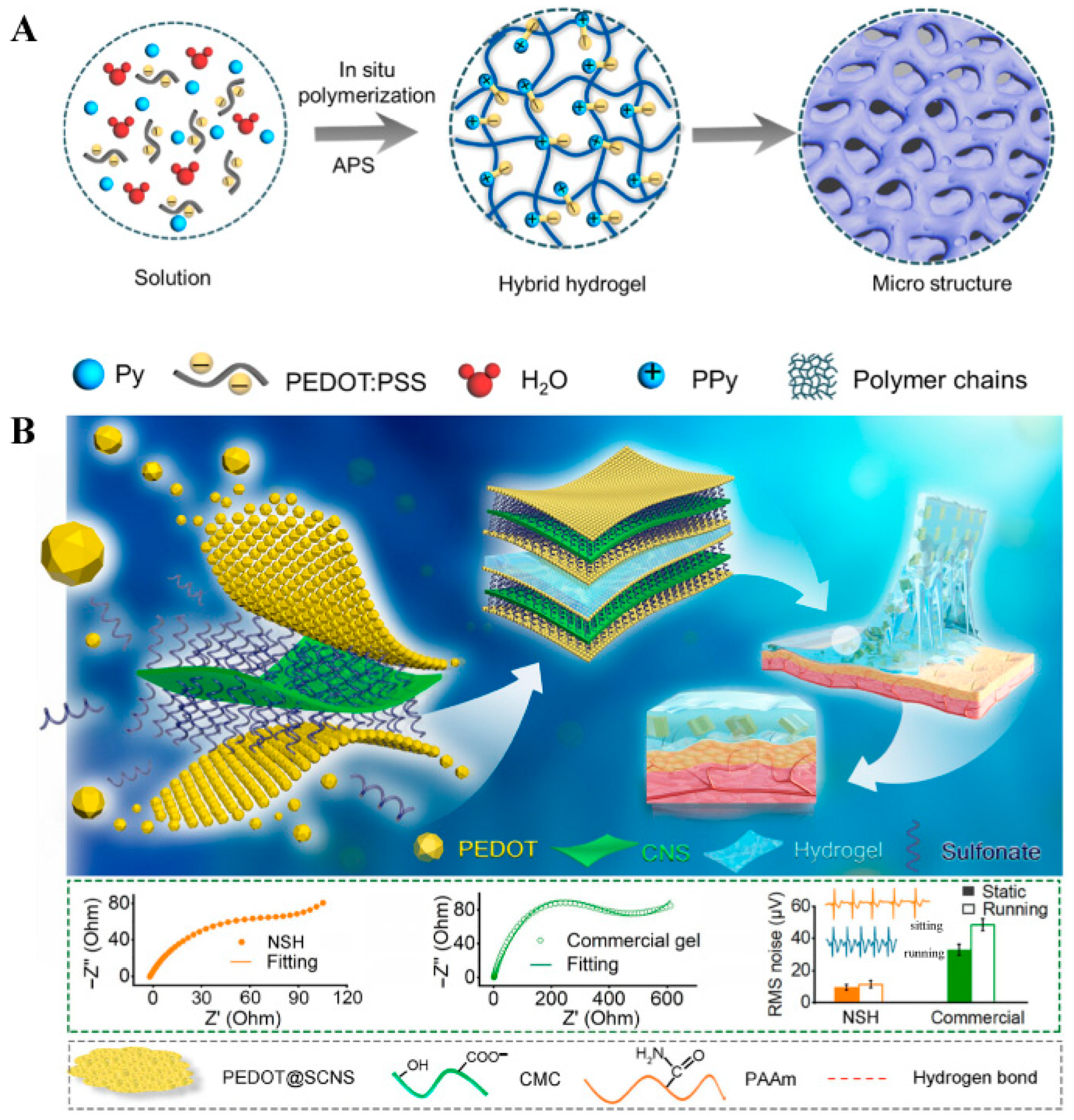 - Li, H.; Cao, J.; Wan, R.; Feig, V.R.; Tringides, C.M.; Xu, J.; Yuk, H.; Lu, B. PEDOTs-Based Conductive Hydrogels: Design, Fabrications, and Applications. Adv. Mater. 2025, 37, 2415151. [Google Scholar] [CrossRef]
