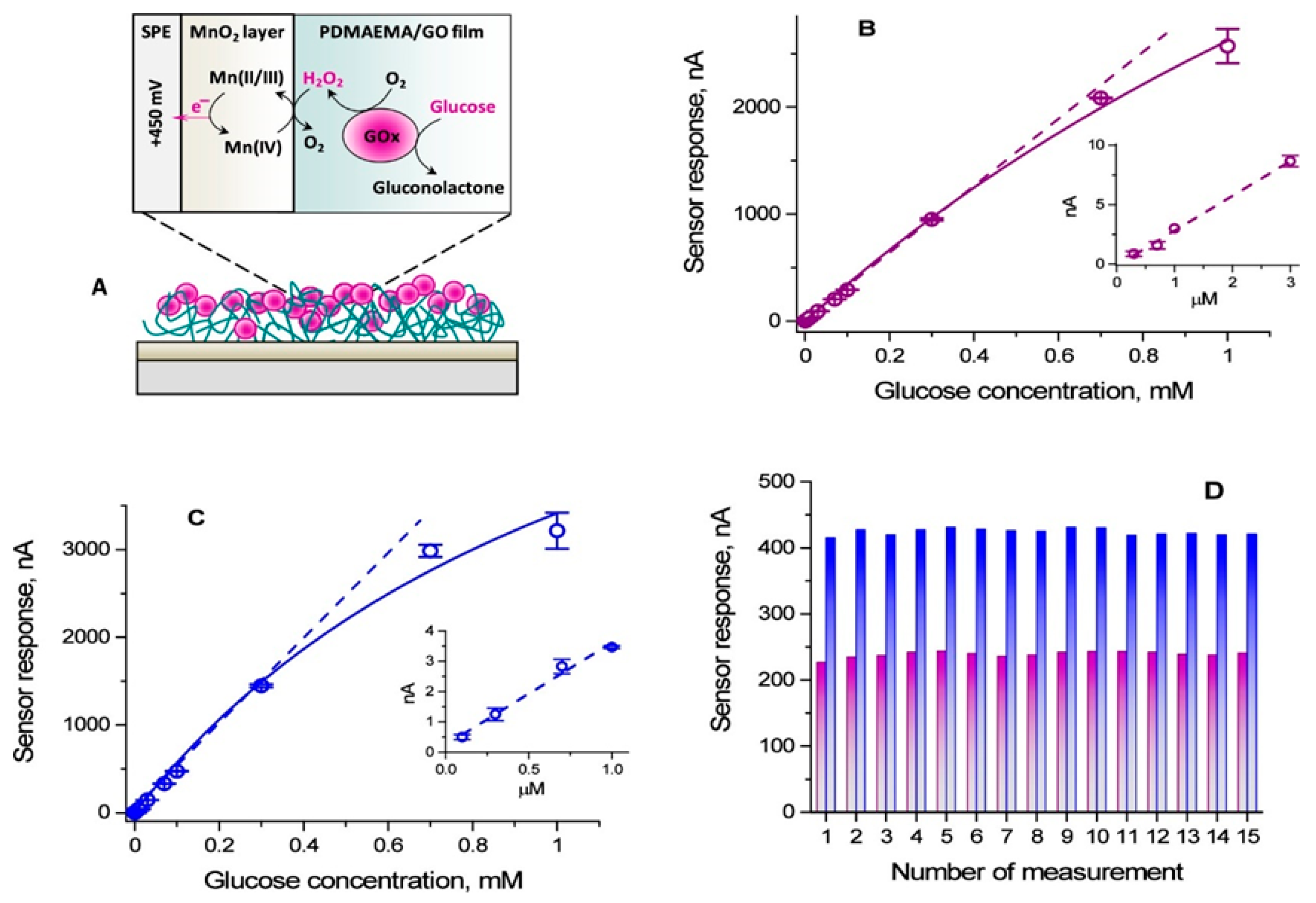 - Sigolaeva, L.V.; Rudakov, N.S.; Pergushov, D.V. Polymer-Enzyme Films on Conductive Surfaces: From Surface Modification by a Dual-Stimuli-Sensitive Polymer to Design of Electrochemical Biosensors. ACS Appl. Polym. Mater. 2025, 7, 11690–11702. [Google Scholar] [CrossRef]