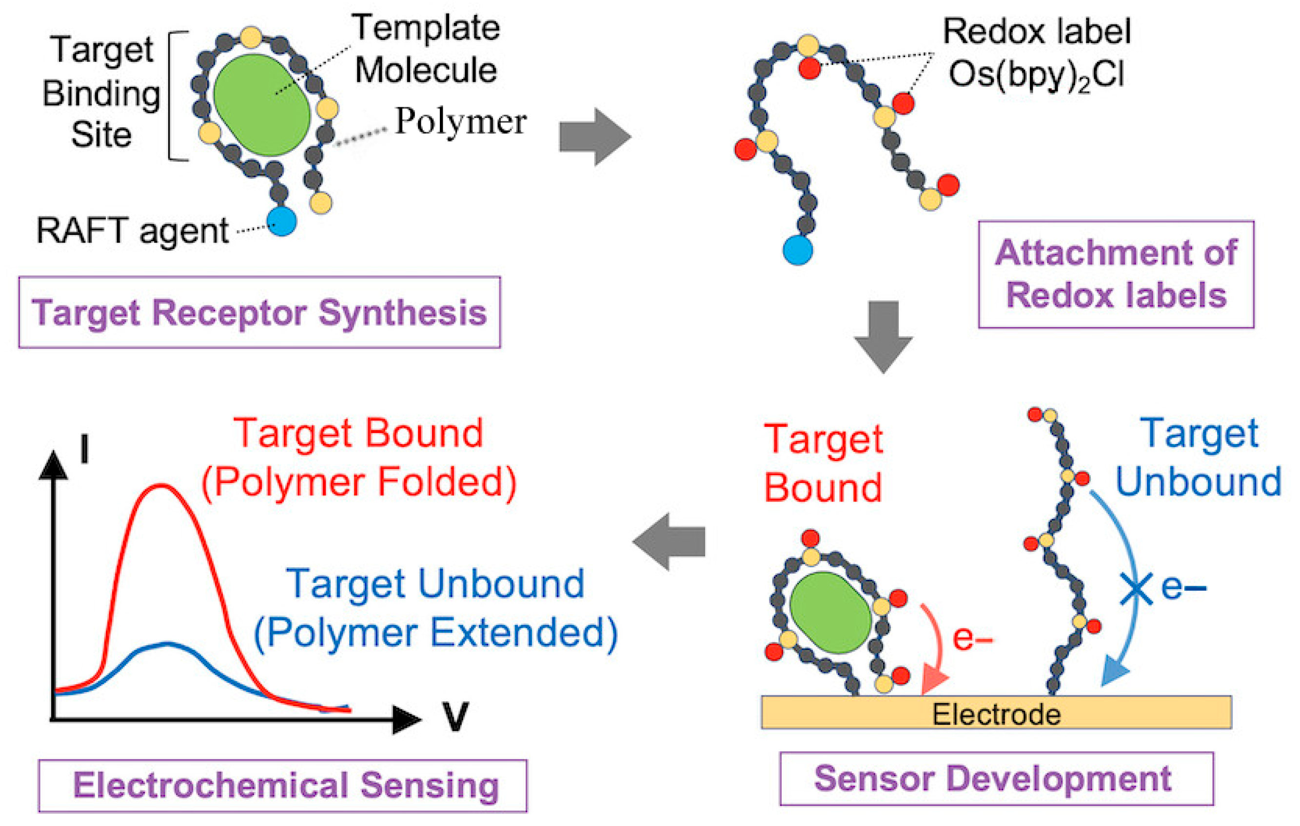 - Wang, L.; Pagett, M.; Zhang, W. Molecularly Imprinted Polymer (MIP) Based Electrochemical Sensors and Their Recent Advances in Health Applications. Sens. Actuators Rep. 2023, 5, 100153. [Google Scholar] [CrossRef]