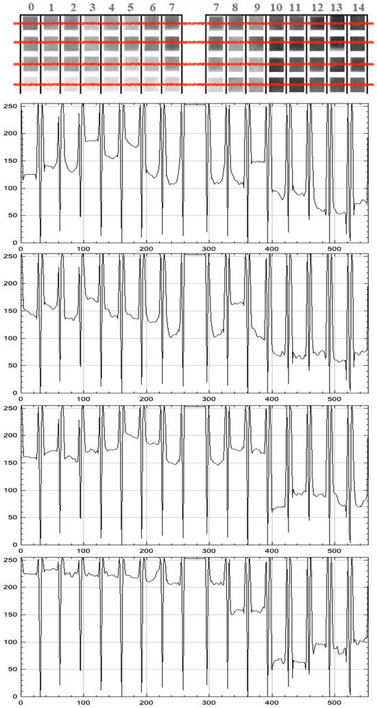 The resulting profiles showed a partial correlation between pH and grayscale intensity, enabling semi-quantitative interpretation in selected pH ranges (see Table 3 and Figure 8):
