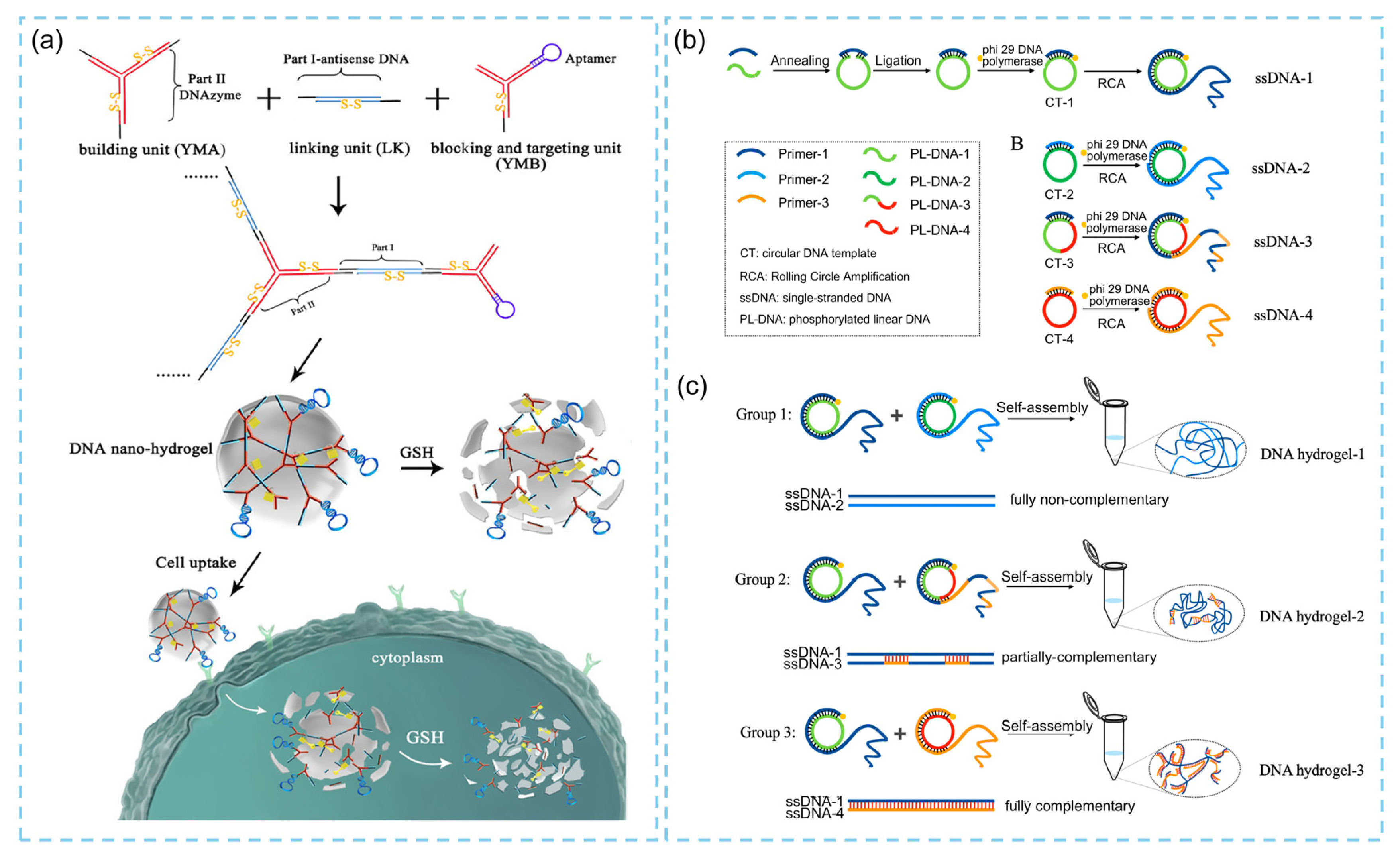 - Qiao, L.; Zhao, Y.; Zhang, M.; Tao, Y.; Xiao, Y.; Zhang, N.; Zhang, Y.; Zhu, Y. Preparation Strategies, Functional Regulation, and Applications of Multifunctional Nanomaterials-Based DNA Hydrogels. Small Methods 2024, 8, 2301261. [Google Scholar] [CrossRef] [PubMed]