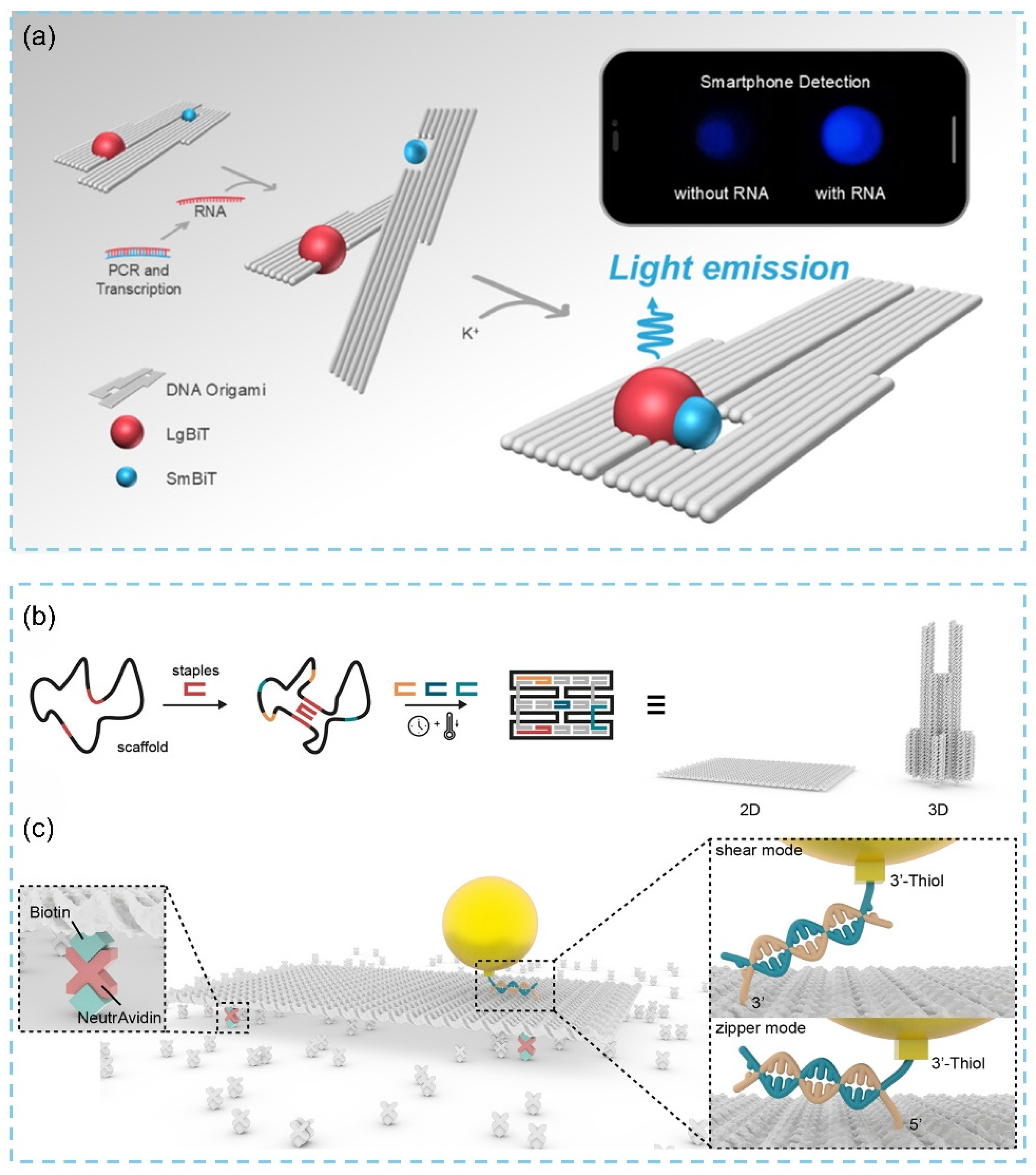 | DNA origami luminescent nanosensor | Viral RNA | Two-dimensional DNA origami + split luciferase | ~100 fM | <5 min | Extremely high; sequence-level precision | Stable for hours at physiological ionic strength | [52] |