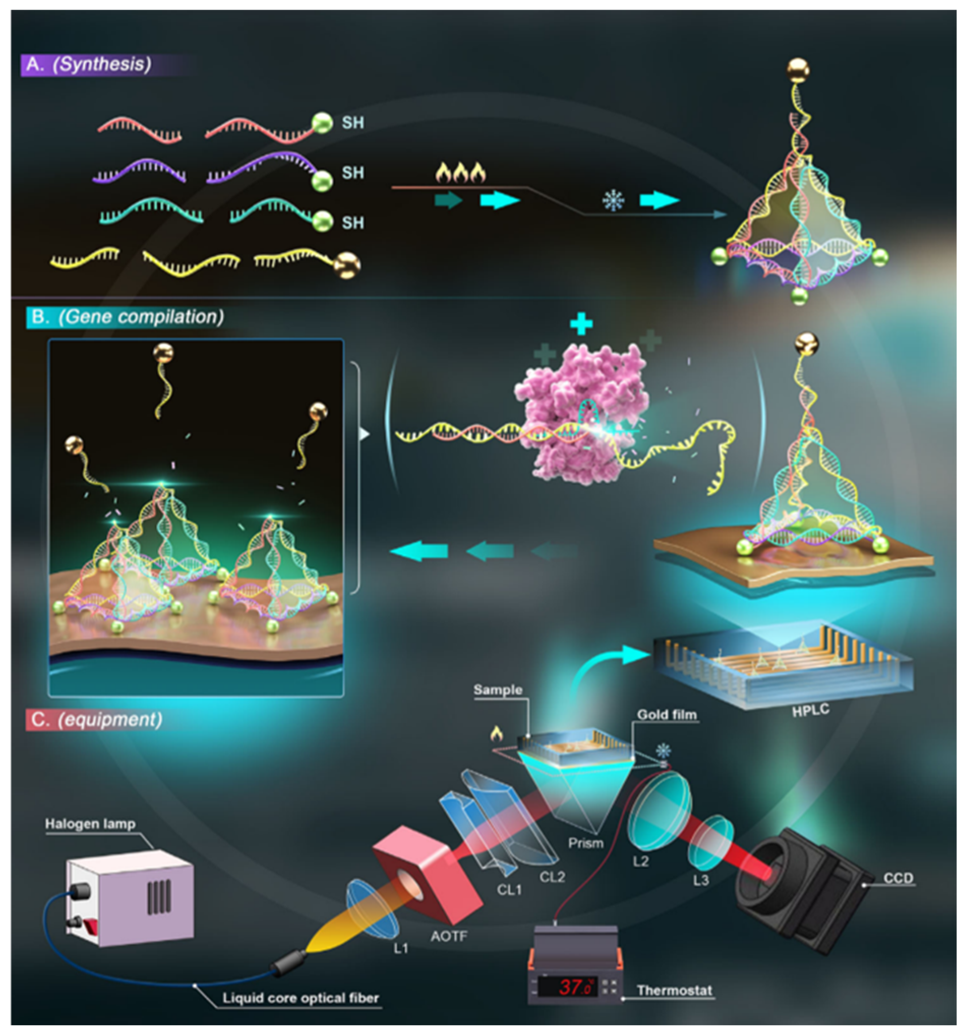 - Chen, Z.; Meng, C.; Wang, X.; Chen, J.; Deng, J.; Fan, T.; Wang, L.; Lin, H.; Huang, H.; Li, S.; et al. Ultrasensitive DNA Origami Plasmon Sensor for Accurate Detection in Circulating Tumor DNAs. Laser Photonics Rev. 2024, 18, 2400035. [Google Scholar] [CrossRef]