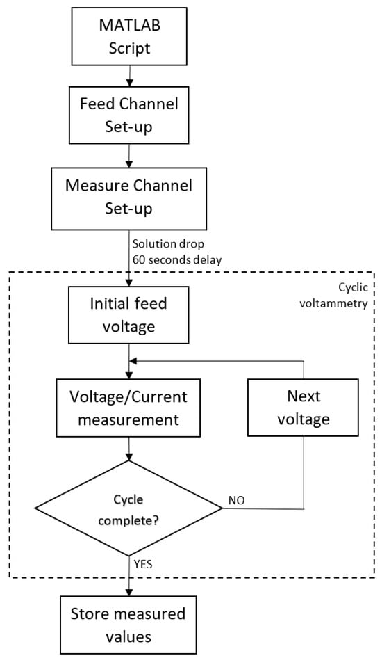 Flux diagram of the MATLAB script for a visual depiction of the steps performed to obtain cyclic voltammogram data.