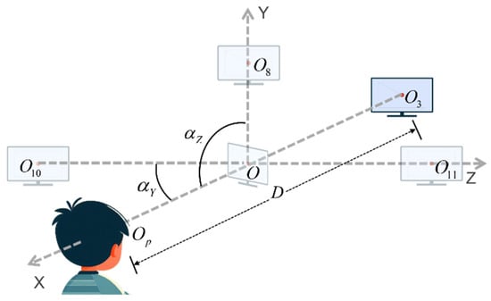 Finally, we define the experimental scope of this set of paradigms based on real experimental conditions with a sample size of 70 subjects. During the actual screening process, fluctuations in the variables are observed, primarily in the subject, with the monitor remaining stationary. Here, to more precisely explain the range of parameters for the experimental setting, we assume that the subject would remain stationary while the position of the monitor changes, i.e., the position of the center of the monitor changes relative to the center of the subject’s pupil. The initial position of the center of the monitor is designated as O, and the center of the subject’s pupils is designated as . At this point, the subject is positioned at eye level. The center of the monitor is set to be in the experiment, as shown in Figure 10. The delineated range of each parameter is presented in Table 3, with the initial situation indicated in the first row of data. The experimental environment permits a range of light conditions, from complete darkness to full daylight. Additionally, minor random fluctuations in the subjects’ body and head movements are acceptable.