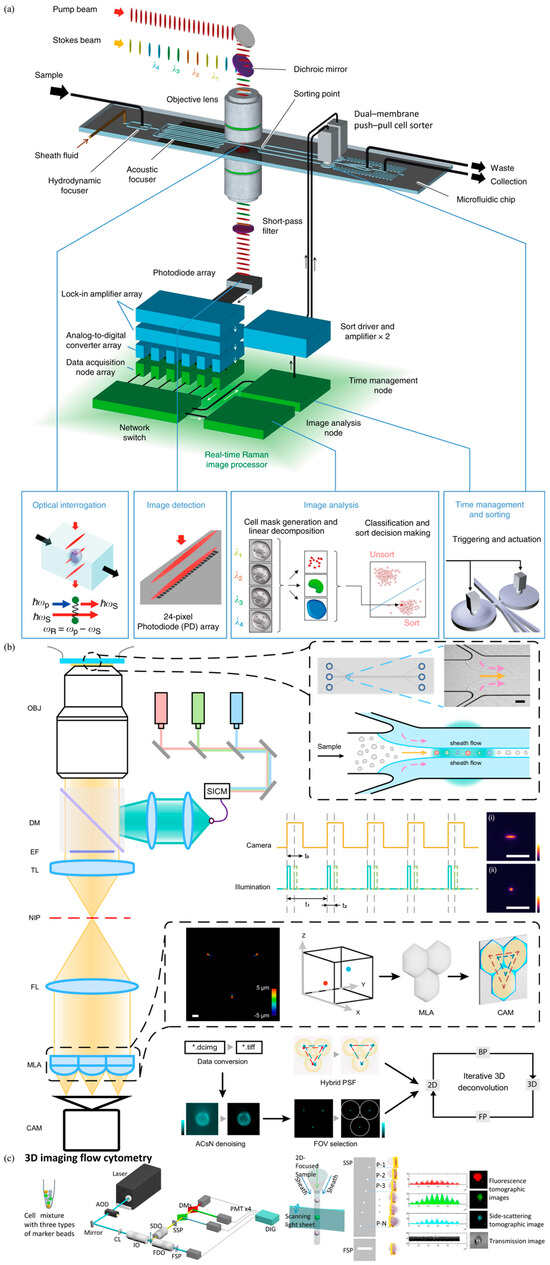 - Schraivogel, D.; Kuhn, T.M.; Rauscher, B.; Rodríguez-Martínez, M.; Paulsen, M.; Owsley, K.; Middlebrook, A.; Tischer, C.; Ramasz, B.; Ordoñez-Rueda, D.; et al. High-speed fluorescence image-enabled cell sorting. Science 2022, 375, 315–320. [Google Scholar] [CrossRef]