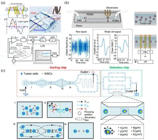 - Zhang, Y.; Liang, H.; Tan, H.; Chen, D.; Wang, Y.; Xu, Y.; Wang, J.; Chen, J. Development of microfluidic platform to high-throughput quantify single-cell intrinsic bioelectrical markers of tumor cell lines, subtypes and patient tumor cells. Sens. Actuators B Chem. 2020, 317, 128231. [Google Scholar] [CrossRef]