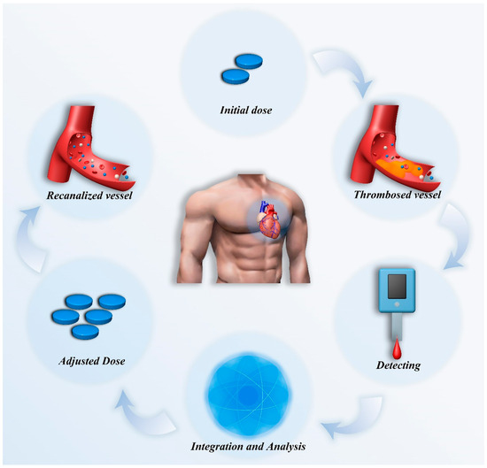 Nevertheless, drug efficacy is often influenced by multiple factors, such as the patient’s genetic background, metabolic capacity, and underlying comorbidities [18,19,20]. These factors result in significant variability in the sensitivity and efficacy of the same medication among different patients. While some patients may experience significant therapeutic benefits, others may encounter insufficient efficacy or severe adverse reactions [21]. Furthermore, for cardiovascular disease patients with comorbidities (e.g., diabetes), combination therapy is a common treatment strategy. However, drug–drug interactions may reduce efficacy or exacerbate adverse effects, adding further complexity to treatment [22]. At the same time, traditional efficacy monitoring methods also have certain limitations. For example, some patients may have a fear of or discomfort with blood sampling, especially those sensitive to needles. Frequent invasive blood sampling for monitoring may reduce patient adherence [23,24]. Therefore, for medications requiring real-time dynamic dose adjustment, the intermittent monitoring methods widely used in clinical practice (e.g., periodic blood tests) may be inadequate for capturing real-time changes in drug concentrations and efficacy. For example, adjusting the dosage of anticoagulant medications typically relies on monitoring the international normalized ratio (INR). Generally, in the treatment of venous thromboembolism, INR is monitored daily during the initial phase of treatment, and the warfarin dosage is adjusted accordingly. Once INR stabilizes, the monitoring interval can be extended to a maximum of 12 weeks after three months [25]. Medications like warfarin require precise dosage adjustments but are easily influenced by factors such as diet, other medications, and genetic factors. Although experts recommend that patients’ time in therapeutic range (TTR) should reach at least 65%, this is rarely achieved in practice [26]. This delay in monitoring restricts the ability to dynamically adjust treatment plans, potentially resulting in therapeutic adjustments lagging behind the patient’s actual needs [26,27,28,29]. A study has shown that patients who perform weekly self-testing (PST) have significantly higher TTR compared to those who test irregularly (every 2–4 weeks) (74% vs. 68.9%, p < 0.0001), with a lower incidence of extreme INR values [30]. This indicates that timely and frequent monitoring is more conducive to INR adjustment.