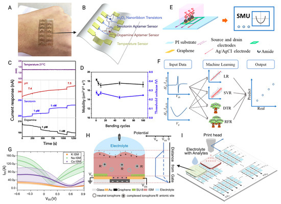 - Xue, M.; Mackin, C.; Weng, W.-H.; Zhu, J.; Luo, Y.; Luo, S.-X.L.; Lu, A.-Y.; Hempel, M.; McVay, E.; Kong, J. Integrated biosensor platform based on graphene transistor arrays for real-time high-accuracy ion sensing. Nat. Commun. 2022, 13, 5064. [Google Scholar] [CrossRef]