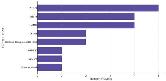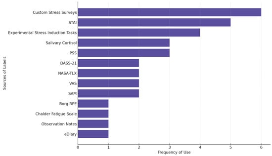 The source of labels in stress-focused studies. Some studies used multiple measures.