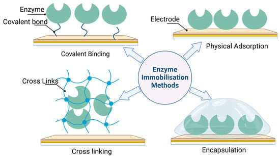 Methods for enzyme immobilization encompass physical adsorption, covalent attachment, cross-linking, and encapsulation.