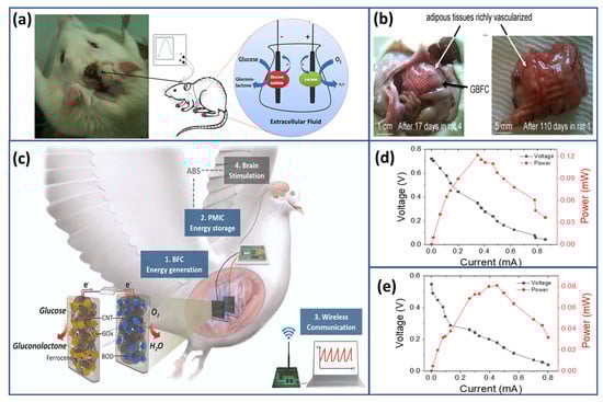 - Lee, D.; Jeong, S.H.; Yun, S.; Kim, S.; Sung, J.; Seo, J.; Son, S.; Kim, J.T.; Susanti, L.; Jeong, Y.; et al. Totally Implantable Enzymatic Biofuel Cell and Brain Stimulator Operating in Bird through Wireless Communication. Biosens. Bioelectron. 2021, 171, 112746. [Google Scholar] [CrossRef]