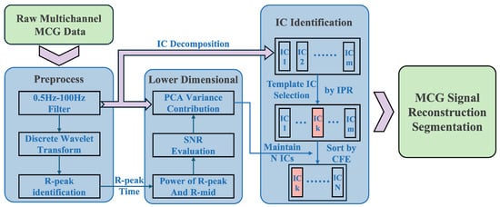MCG signals are usually exposed to severe environmental and physiological signal contamination, and blind source separation of the signal using ICA is a common processing method. However, component identification in ICA still relies heavily on human intervention. Different experimenters may have subjective judgments regarding whether a component is an artifact or not, leading to variability in the results and making it difficult to perform quantitative evaluations. Manual involvement in the process also adds complexity and increases the processing time required.