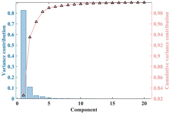 The variance of the ith principal component is represented as , and the is the sum of the variances of all the components. The cumulative variance contribution rate of the first k principal components is the proportion of the total variance.