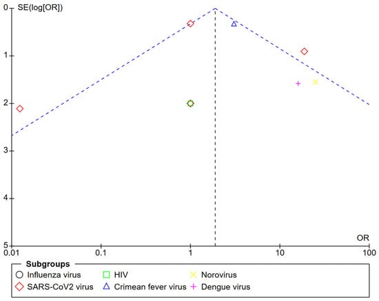 Funnel plot of the diagnostic odds ratio according to the types of viruses.