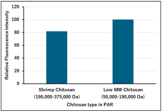 The effect of chitosan type and molecular weight on the fluorescence intensity of the reaction between PAR (0.5 μM) and boric acid.