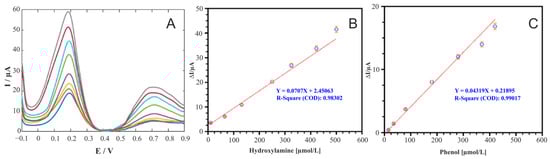 - Benvidi, A.; Naserpour, F.; Zarnousheh Farahani, K.; Farasati Far, B.; Karooby, E.; Akbari, A. Sensitive Electrochemical Sensor Modified by Hydroquinone Derivative and Magnesium Oxide Nanoparticles for Simultaneous Determination of Hydroxylamine and Phenol. Arab. J. Sci. Eng. 2024, 49, 9307–9322. [Google Scholar] [CrossRef]