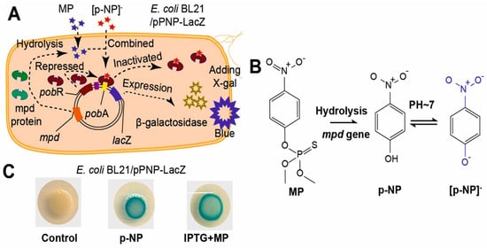 - He, J.; Zhang, X.; Qian, Y.; Wang, Q.; Bai, Y. An Engineered Quorum-Sensing-Based Whole-Cell Biosensor for Active Degradation of Organophosphates. Biosens. Bioelectron. 2022, 206, 114085. [Google Scholar] [CrossRef]