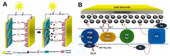 - Buyukharman, M.; Mulazimoglu, I.E.; Yildiz, H.B. Construction of a Conductive Polymer/AuNP/Cyanobacteria-Based Biophotovoltaic Cell Harnessing Solar Energy to Generate Electricity via Photosynthesis and Its Usage as a Photoelectrochemical Pesticide Biosensor: Atrazine as a Case Study. ACS Omega 2024, 9, 16249–16261. [Google Scholar] [CrossRef]