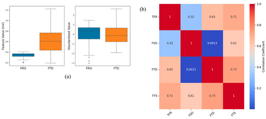 In our analysis, we first applied Z-score standardization, with Figure 9a showing its effect in ensuring that FSO and FTD contributed equally to the ML models. Figure 9b presents a correlation matrix detailing the relationships between the inputs and the output, providing a deeper insight into the interdependencies among these variables. This analysis revealed not only the direct relationships, such as the strong correlation of the composite metric FTS with TFR, but how the individual features contributed to the overall prediction.