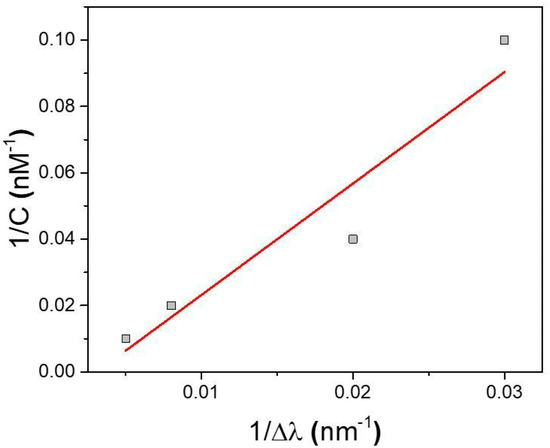 The dissociation constant KD, estimated by Scatchard plot analysis of binding data [47], reveals a remarkable value of 100 ± 25 nM for the MIP-PSi sensor, indicating a high affinity of the imprinting sites for IL-6. Details of the calculation are reported in Figure 8.