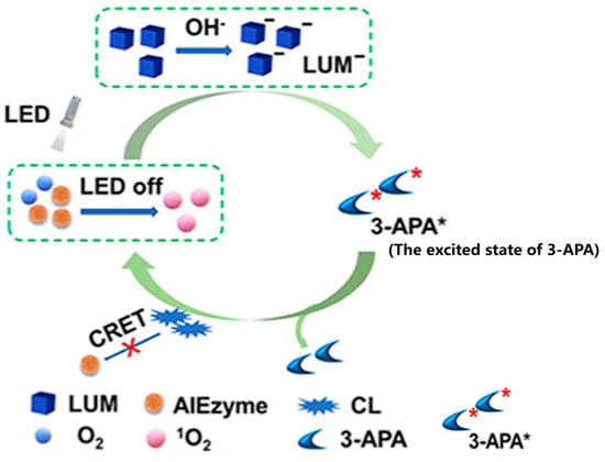 Possible mechanism proposed for long-lasting CL of AIEzyme/LUM [103].