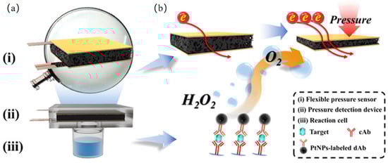 Schematic Illustration of the (a) pressure-based immunosensing device and (b) working principle of the pressure-based immunoassay for CEA [118].