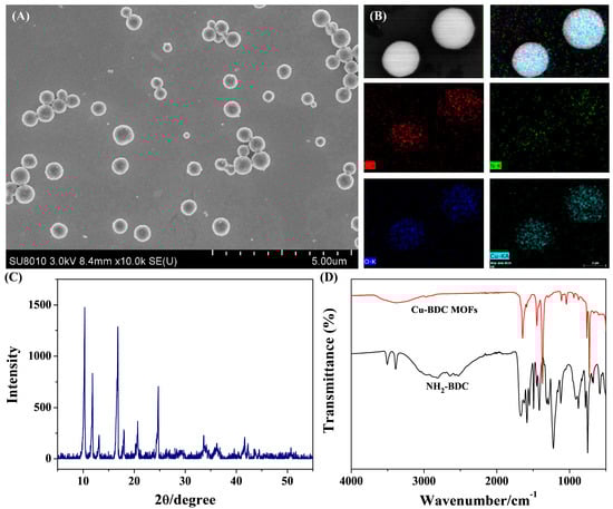 2.3. Preparation and Modification of Cu-BDC MOFs
