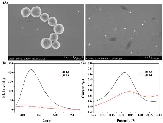- Fluorescence and electrochemical measurement: A total of 100 μL of 50 mM acetic acid buffer solution containing 0.1 NaCl was added to dilute the supernatant for the fluorescence assay and DPV measurement. The fluorescence spectra were collected with an excitation wavelength of 340 nm. The DPV responses were recorded from 0.25 to –0.05 V.