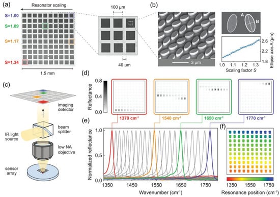 - Tittl, A.; Leitis, A.; Liu, M.; Yesilkoy, F.; Choi, D.K.; Neshev, D.N.; Kivshar, Y.S.; Altug, H. Imaging-based molecular barcoding with pixelated dielectric metasurfaces. Science 2018, 360, 1105–1109. [Google Scholar] [CrossRef]