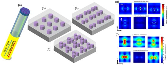 - Alhalaby, H.; Principe, M.; Zaraket, H.; Vaiano, P.; Aliberti, A.; Quero, G.; Crescitelli, A.; Di Meo, V.; Esposito, E.; Consales, M.; et al. Design and Optimization of All-Dielectric Fluorescence Enhancing Metasurfaces: Towards Advanced Metasurface-Assisted Optrodes. Biosensors 2022, 12, 264. [Google Scholar] [CrossRef]
