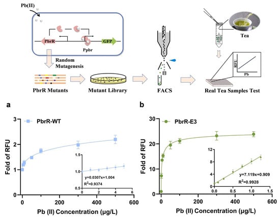 - Shen, L.; Chen, Y.W.; Pan, J.J.; Yu, X.; Zhang, Y.B.; Guo, B.X.; Wang, J.Q.; Liu, Y.; Xiao, X.; Chen, S.P.; et al. Development of a highly sensitive PbrR-based biosensor via directed evolution and its application for lead detection. J. Hazard. Mater. 2025, 488, 137489. [Google Scholar] [CrossRef]
