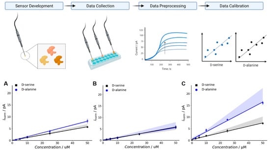 - Moussa, S.; Murtas, G.; Pollegioni, L.; Mauzeroll, J. Enhancing Electrochemical Biosensor Selectivity with Engineered D-Amino Acid Oxidase Enzymes for D-Serine and D-Alanine Quantification. ACS Appl. Bio Mater. 2021, 4, 5598–5604. [Google Scholar] [CrossRef]